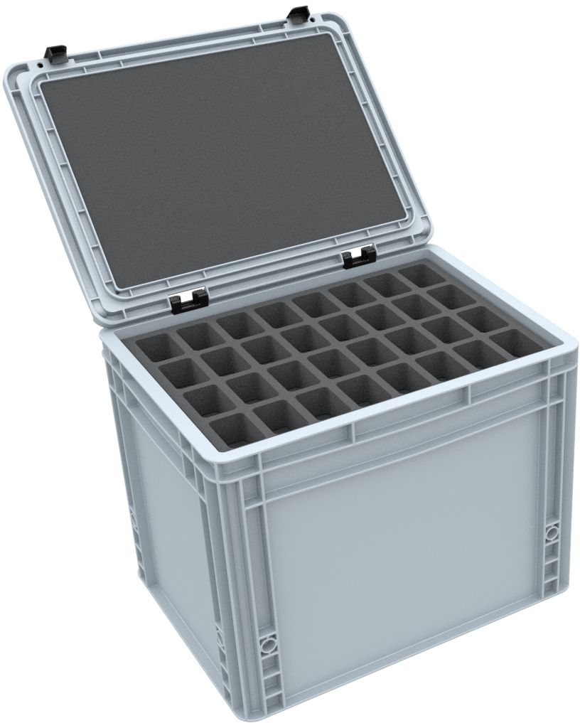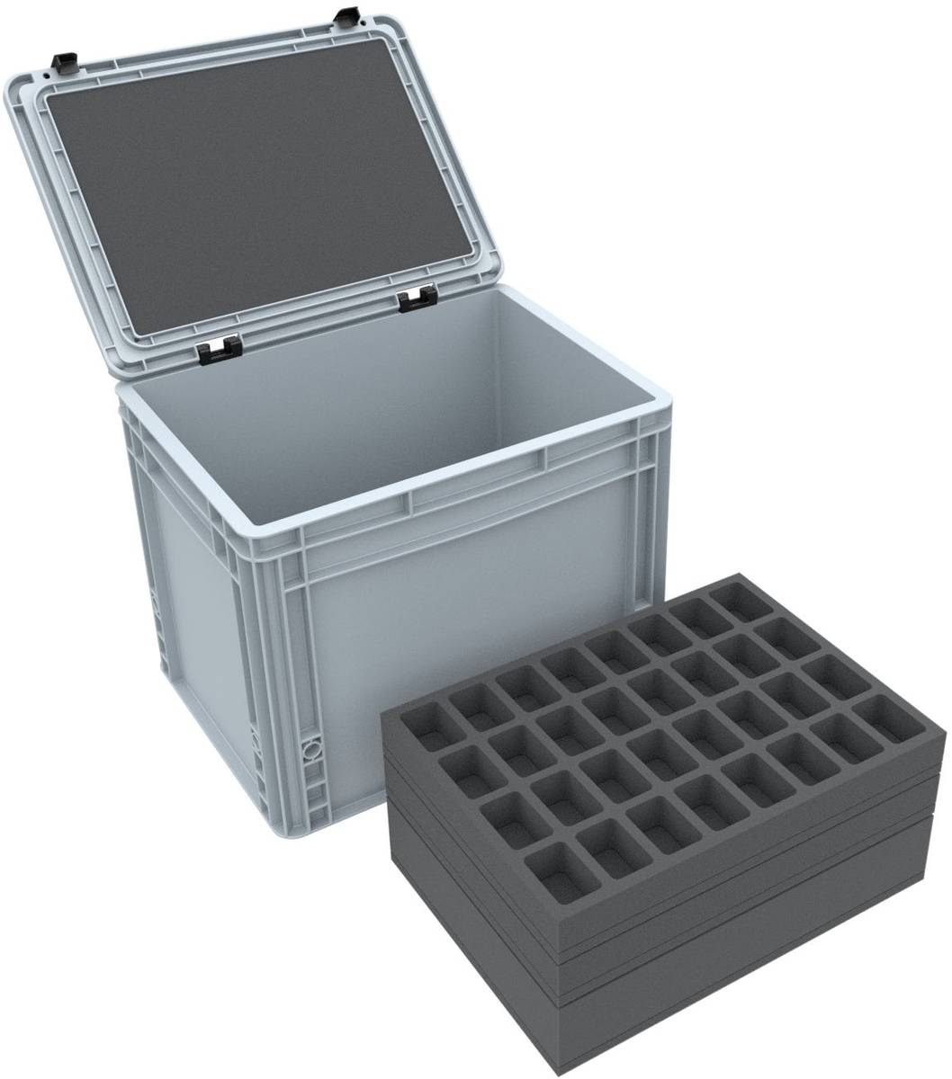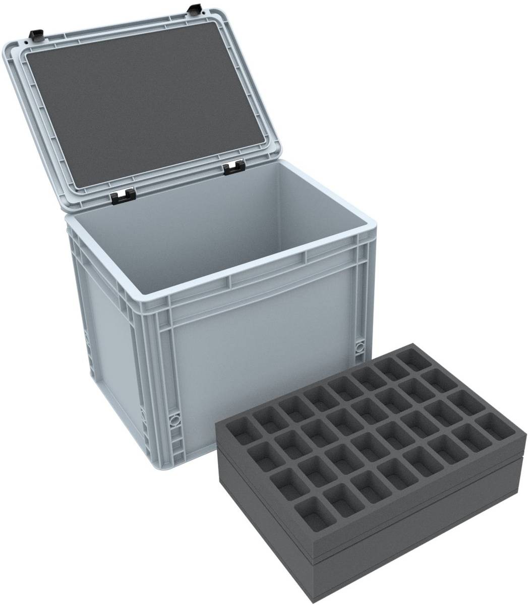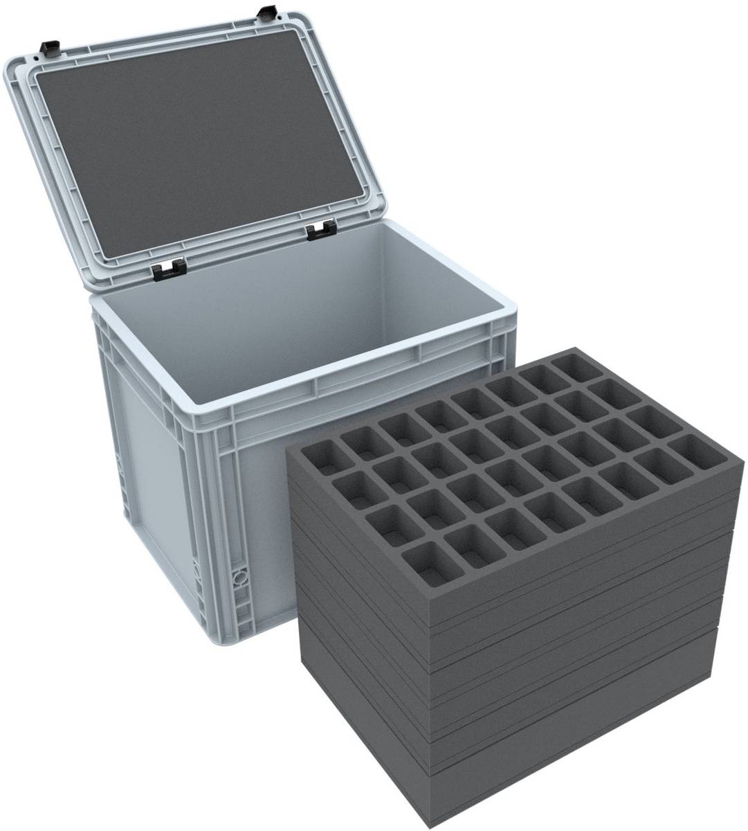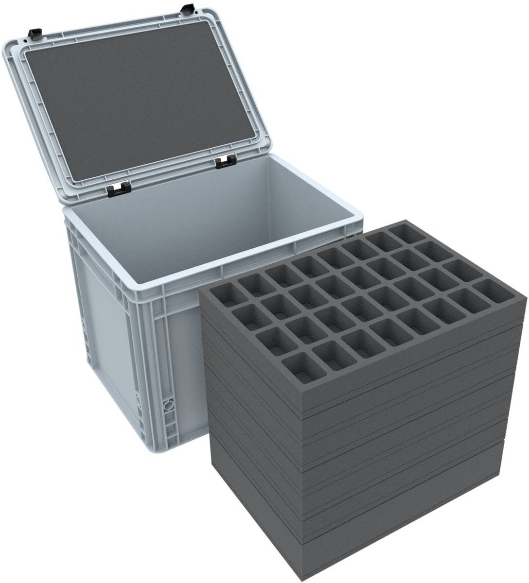 This Feldherr Eurobox set provides safe and organized storage for your entire tabletop army. Six precisely fitting foam inserts hold up to 192 miniatures, while the 60 mm high pick & pluck foam insert offers flexible storage for large or bulky models such as vehicles or monsters. Perfect for wargaming systems like Warhammer 40,000, Age of Sigmar, The Old World, Kill Team, BattleTech, Marvel Crisis Protocol, and Warcry.