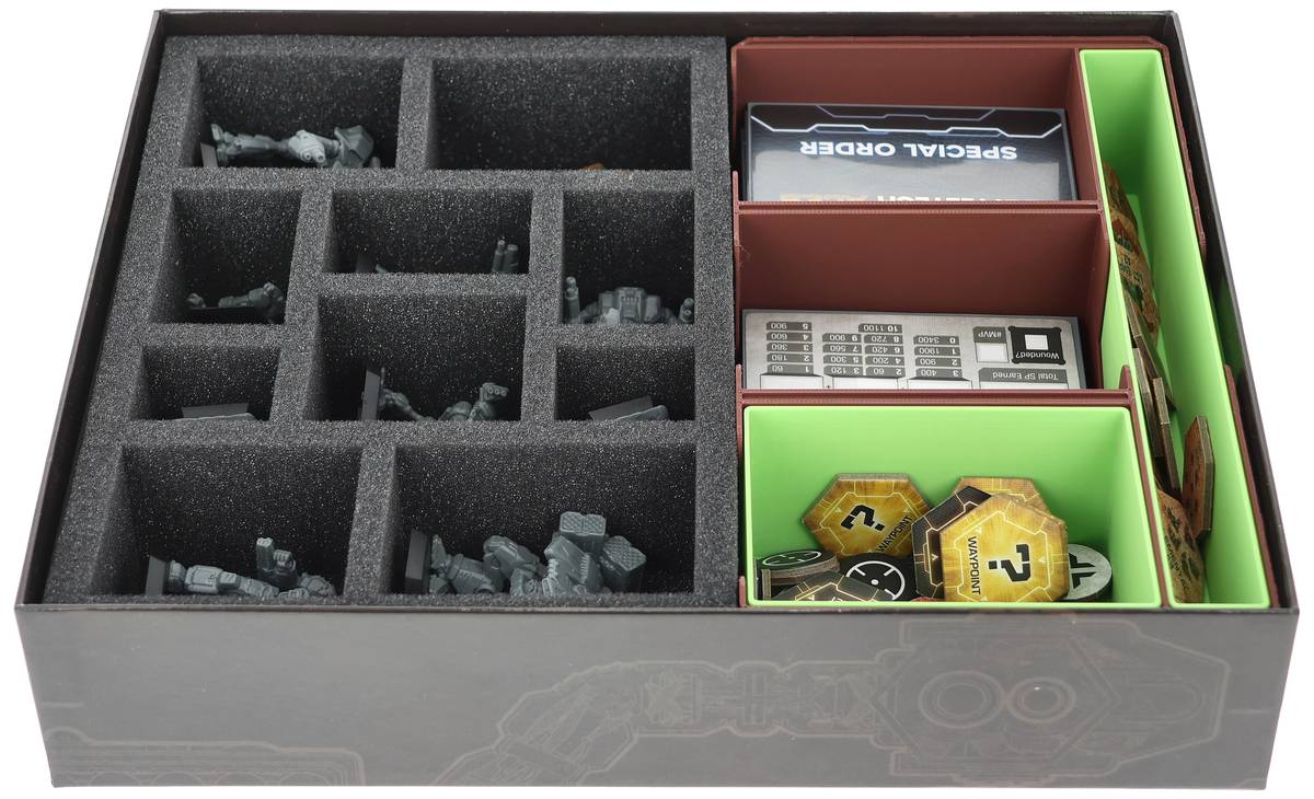 Across windswept deserts and intense tactical encounters, BattleTech: Aces - Scouring Sands delivers fast-paced combat in a harsh environment. To ensure your miniatures survive their next deployment unscathed and your cards and tokens stay neatly stored, this Feldherr foam set including organizer insert provides reliable protection and clear structure inside the core game box.