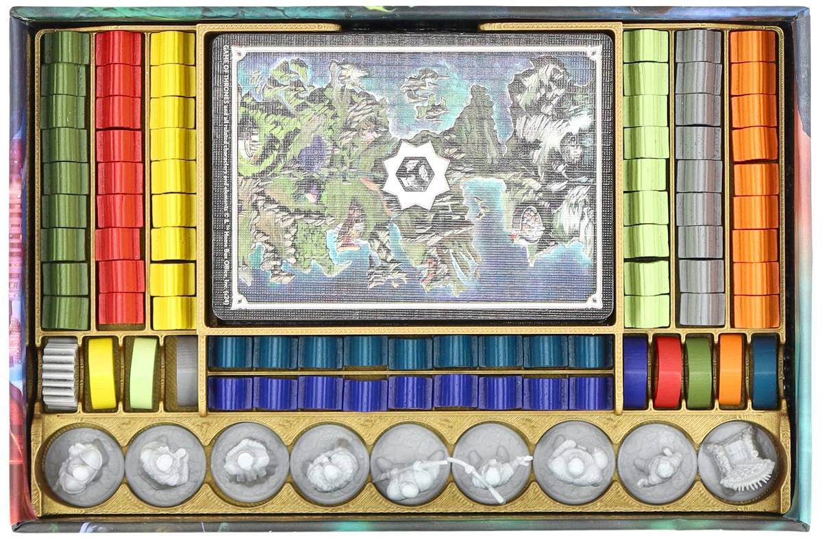 Sorts Deluxe Edition and Ice and Fire expansion compactly and clearly - all meeples, cards, and tokens safely stored for quick game setup.