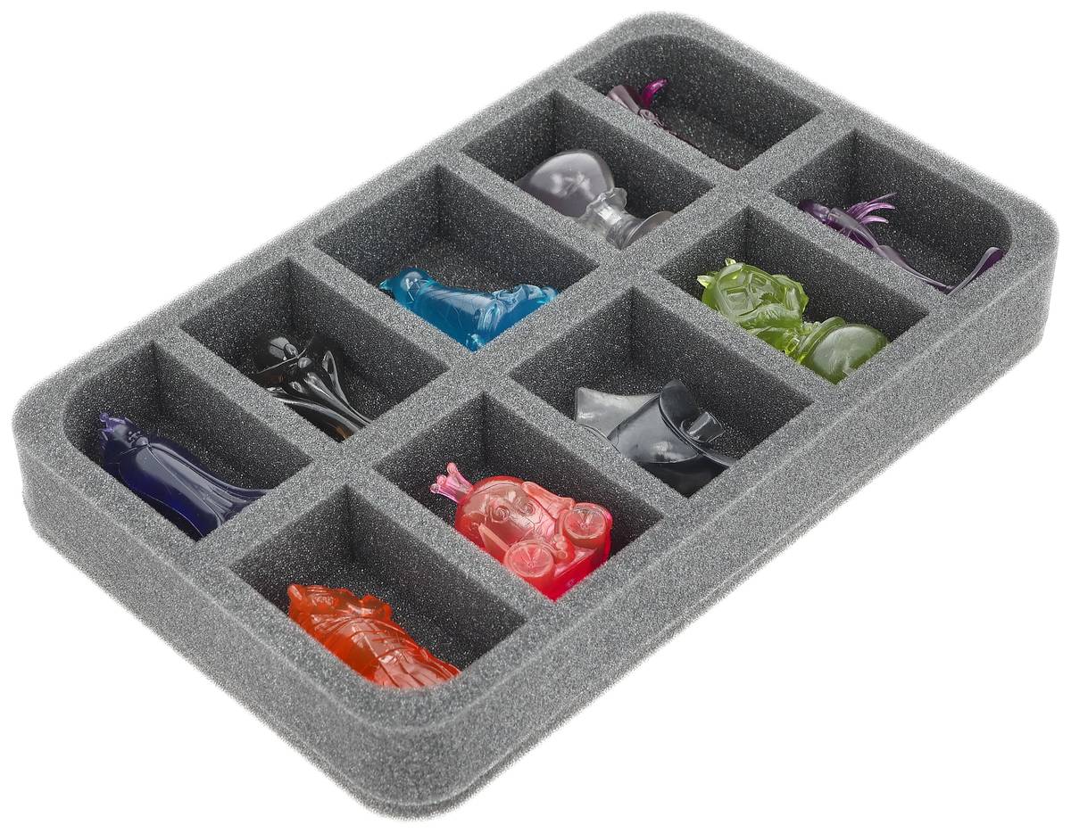 Order for evil! With this large complete storage solution, you can safely and neatly store all game components from the Disney Villainous core game and all released expansions - including space for up to 40 Villains.