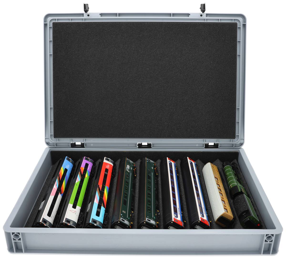 L'insert en mousse polyvalent dans la robuste valise Euro Container avec couvercle rabattable - Pour le stockage, le transport, la présentation et la réparation de vos modèles en calibre H0