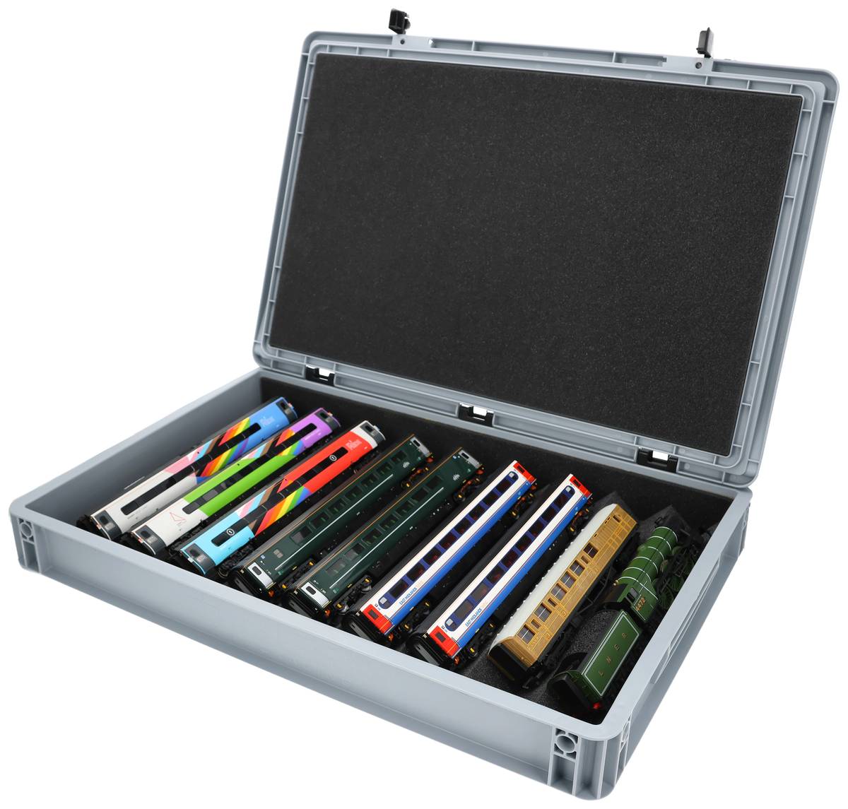 Stocker correctement, présenter clairement et transporter en toute sécurité - L'insert en mousse polyvalent pour les trains miniatures à l'écartement 00 dans la solide Eurobox.