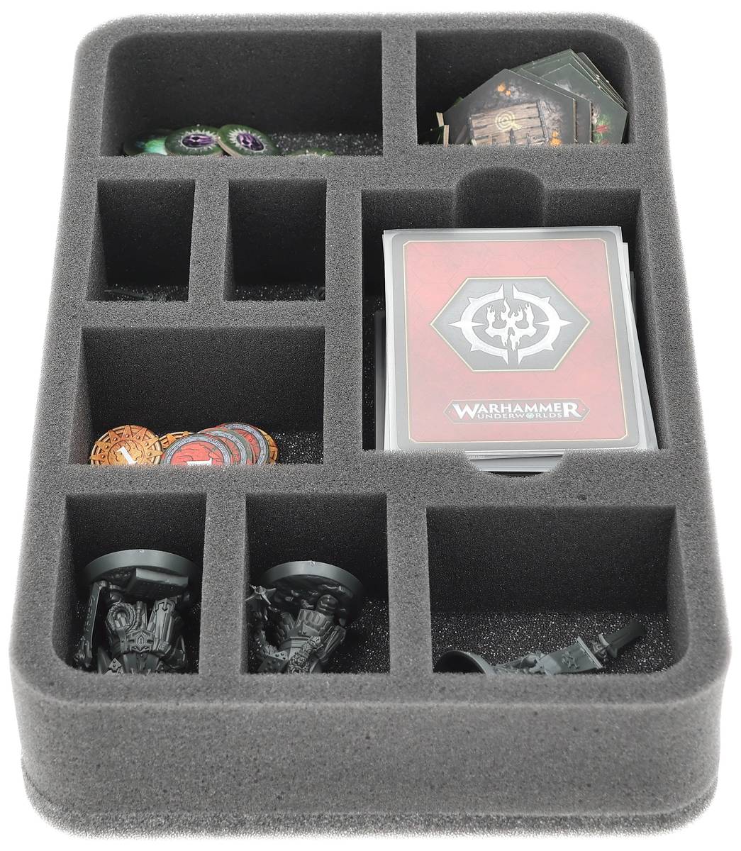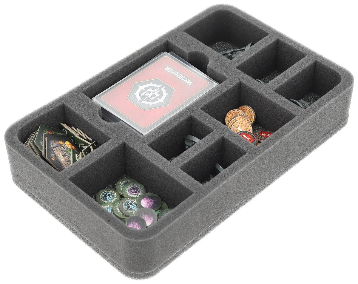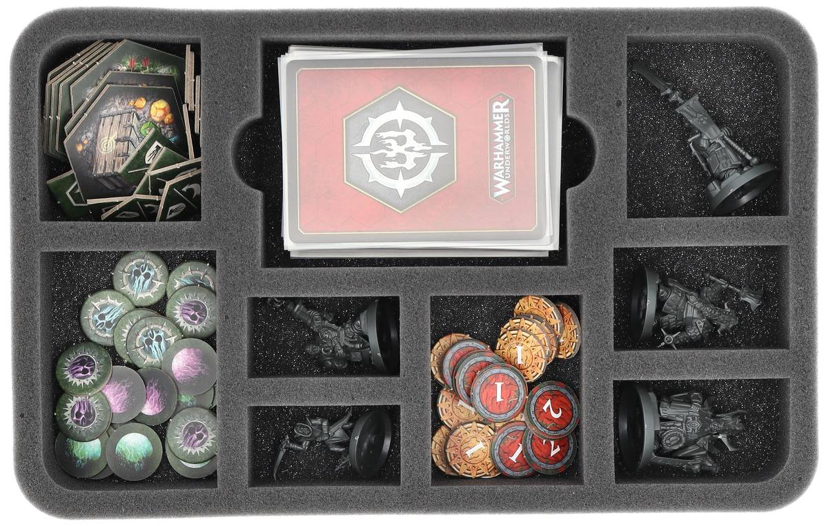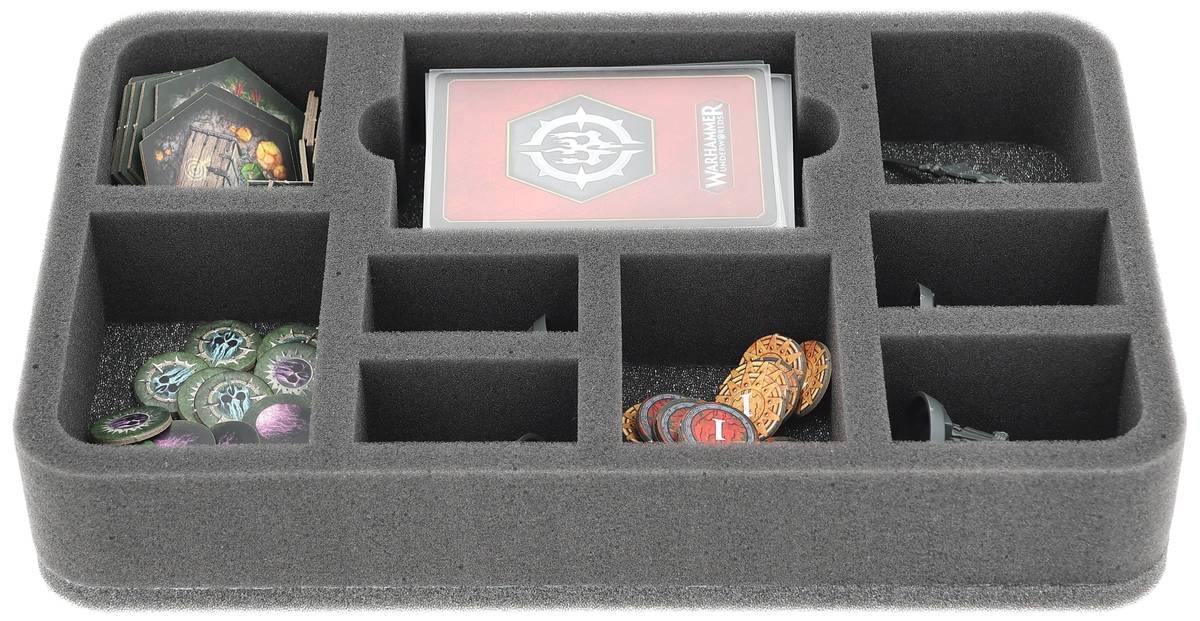 This Feldherr Half-Size foam tray provides space for the 5 models in your warband, as well as cards and tokens. The precise cut ensures a snug fit so that nothing can slip during transport. The high-quality foam ensures that delicate details are reliably protected. The colors of painted figures are also preserved and protected from color abrasion and scratches.