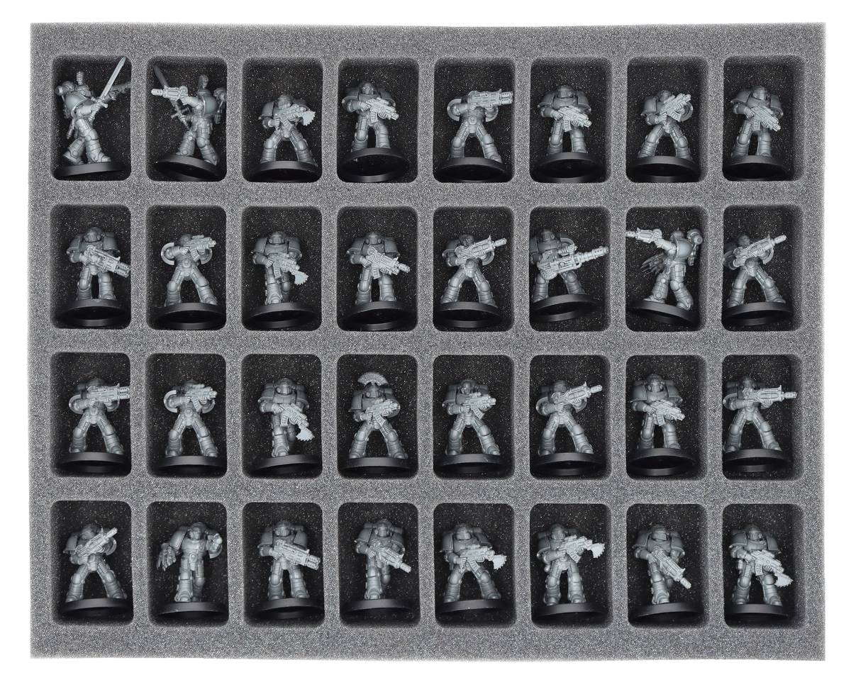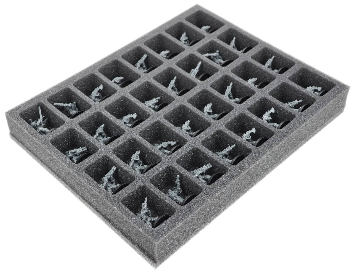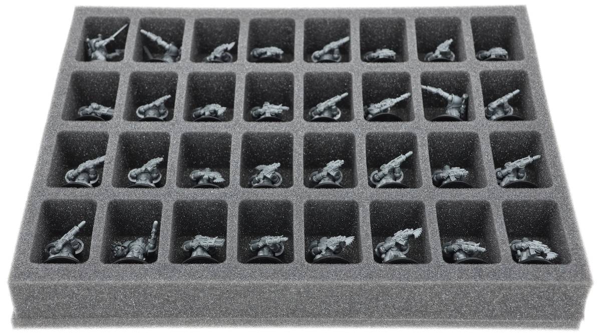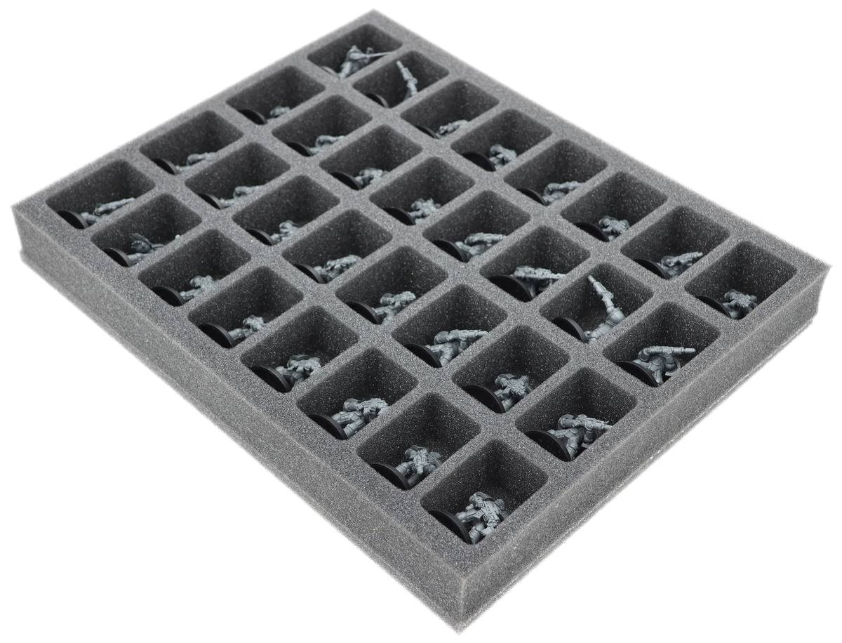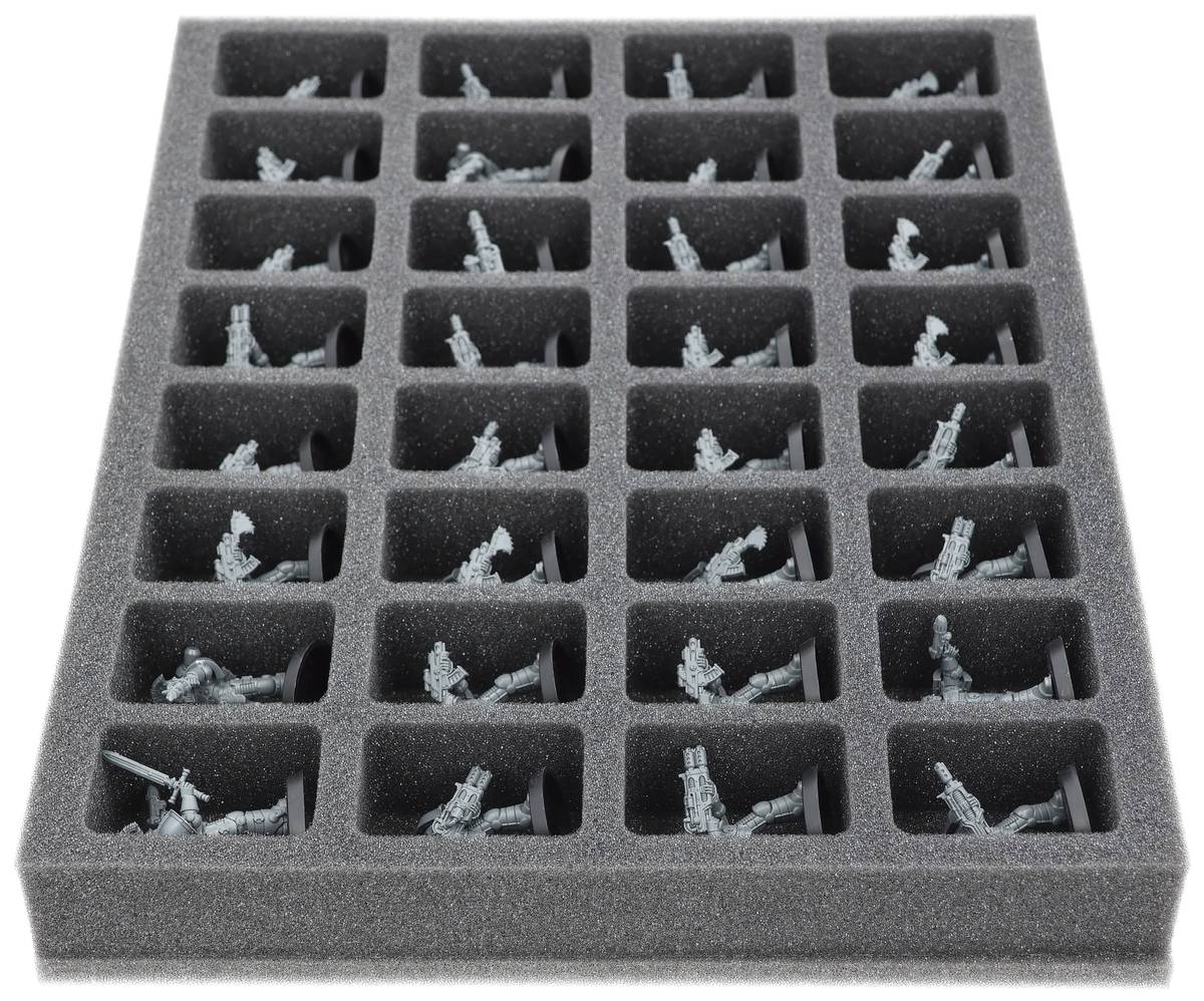 Su questo vassoio in schiuma Feldherr c'è spazio per un massimo di 32 miniature del vostro esercito. L'inserto è particolarmente adatto per conservare i Legionari Veterani MK2 (modelli standard) e modelli di dimensioni simili.