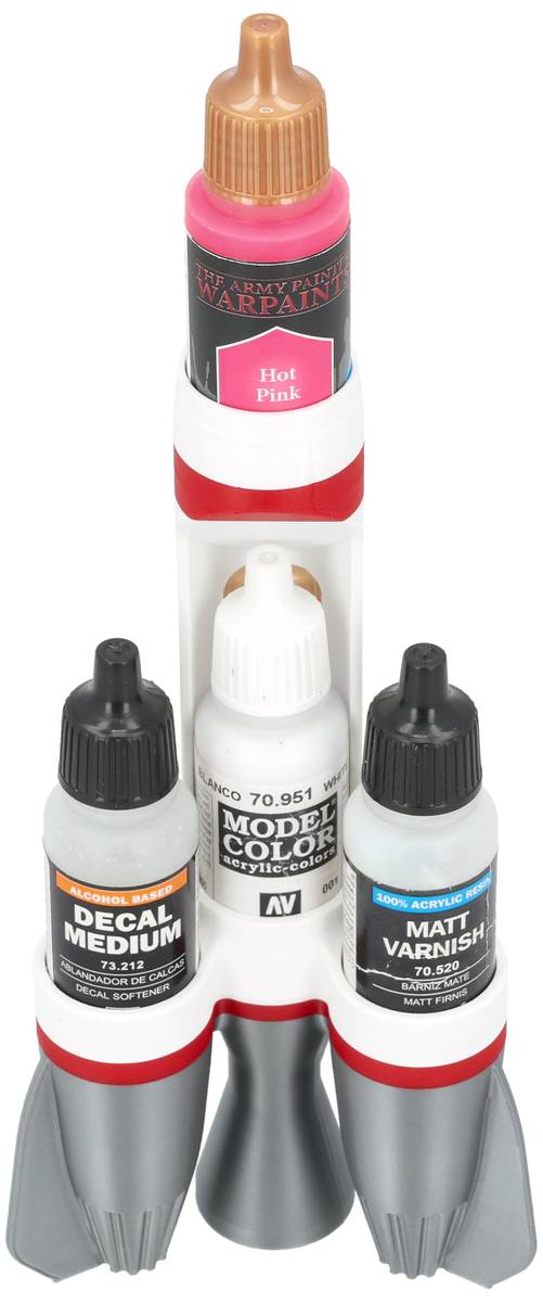 A compact and fun storage solution for organizing up to five Vallejo paint bottles, ideal for keeping your miniature and model paints neatly arranged and always within easy reach on your hobby desk.