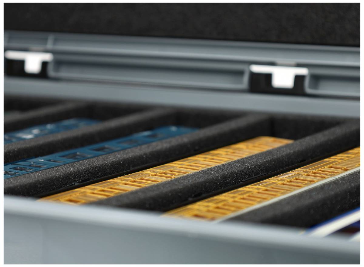 Drobno porowata pianka niezawodnie chroni wrażliwe detale, lakier i mocowania modeli przed zadrapaniami i uszkodzeniami. Wytrzymała skrzynka Eurobox wykonana z odpornego na wstrząsy tworzywa sztucznego zapewnia dodatkową ochronę przed czynnikami zewnętrznymi. Prosty system zawiasów z dwoma zamkami utrzymuje pudełko bezpiecznie zamknięte i chroni zawartość przed kurzem i brudem.