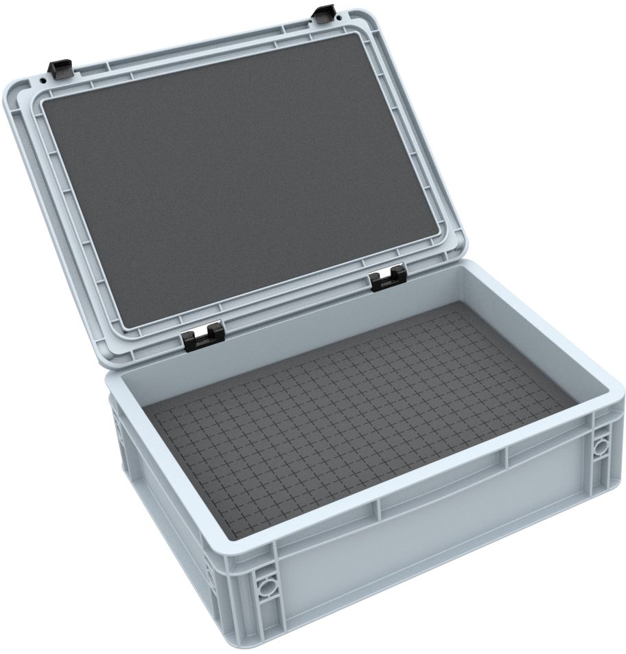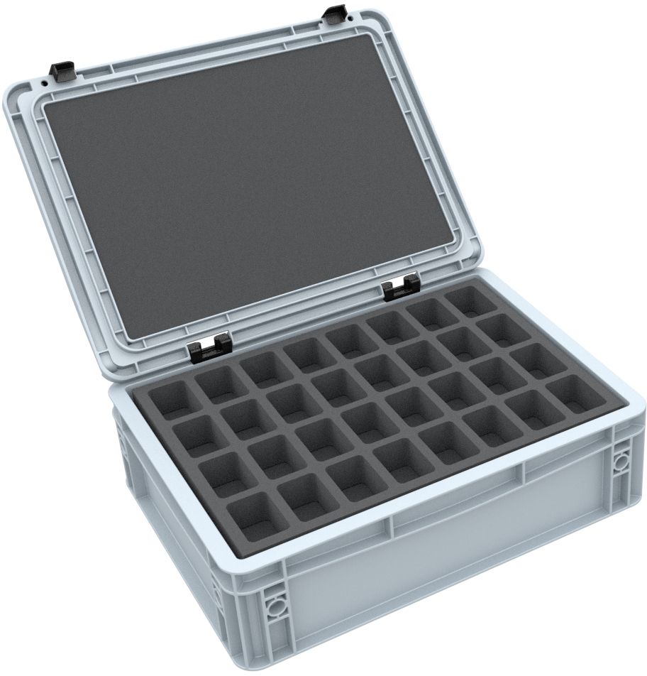 Durable Eurobox with foam insert for 32 miniatures and additional pick & pluck foam for large models – flexible protection for all types of wargaming figures