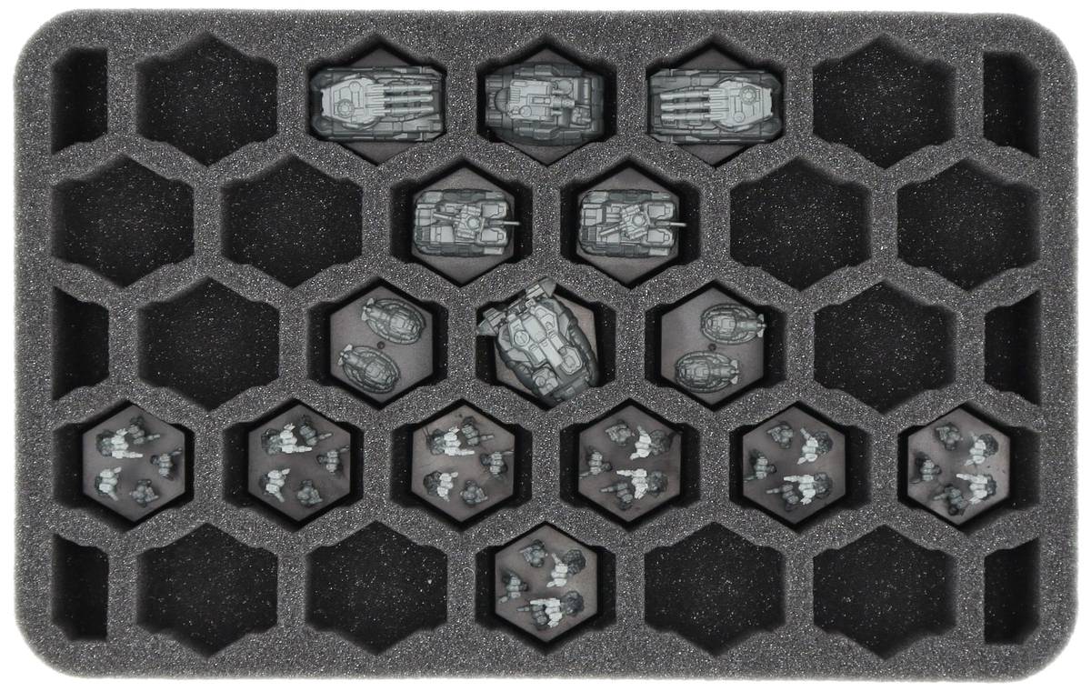 Łącznie dostępnych jest 116 niestandardowych przedziałów. Wkładki piankowe zapewniają optymalną ochronę kolekcji BattleTech i zapewniają przejrzystość i porządek. Drobno porowata pianka niezawodnie chroni wrażliwe detale przed uszkodzeniami, zarysowaniami i ścieraniem farby.