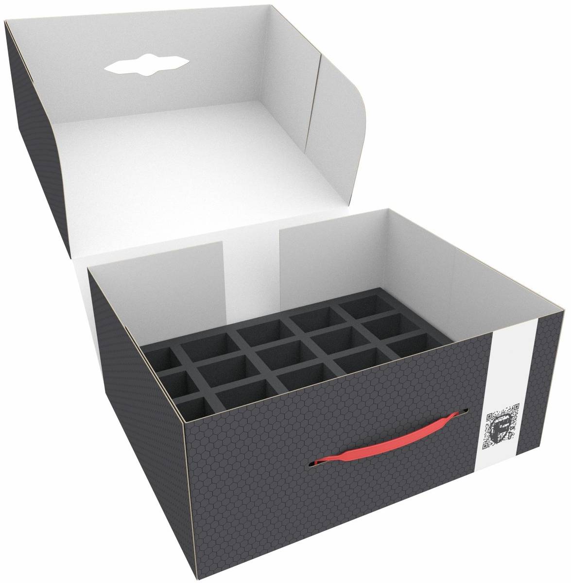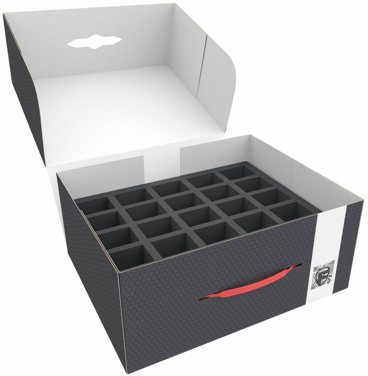 Topper z pianki zapewnia, że wszystkie miniatury pozostają bezpiecznie na swoim miejscu podczas transportu i przemieszczania.