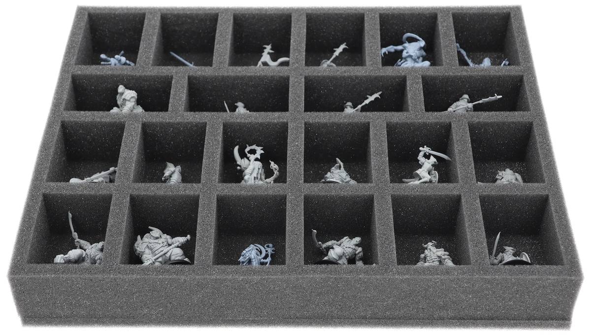 On this Feldherr foam tray you have space for up to 22 miniatures of your army. The insert is especially suitable for storing the Northern Tribes, Scions of Yaldabaoth and similar sized models.